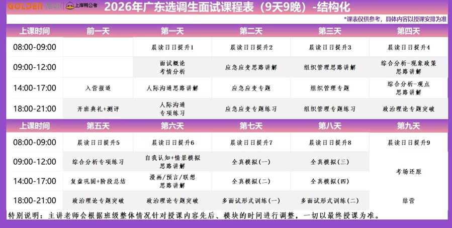 三、高顿上岸鸭公考2026年广东省选调生面试课程安排