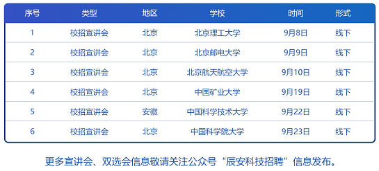 网申地址:https://gsafety.hotjob.cn/,关注企业公众号“辰安科技招聘”点击招贤纳士了解公司最新动态和招聘信息,抢占席位,还有特别礼品等着大家哟~