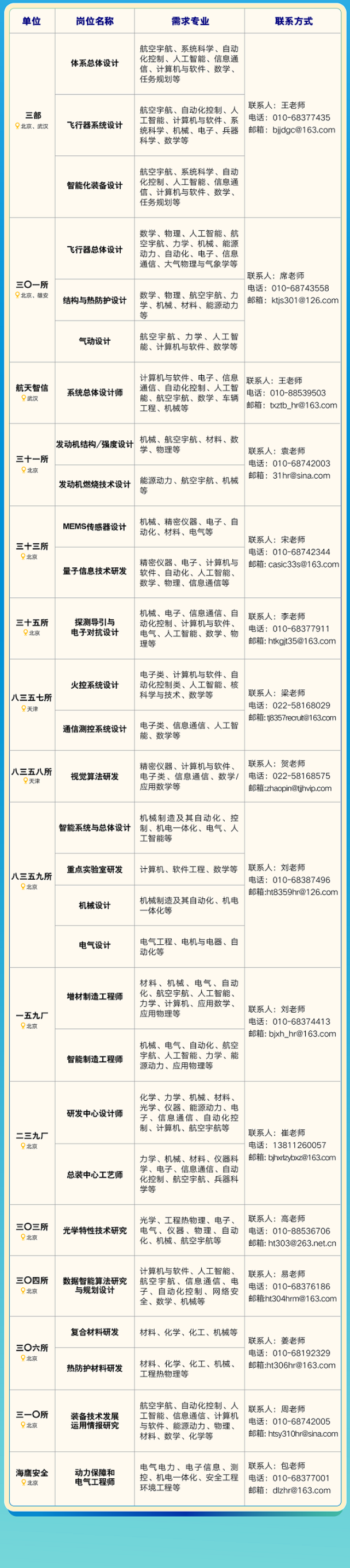 航天三院2026年春季校园招聘公告重点内容