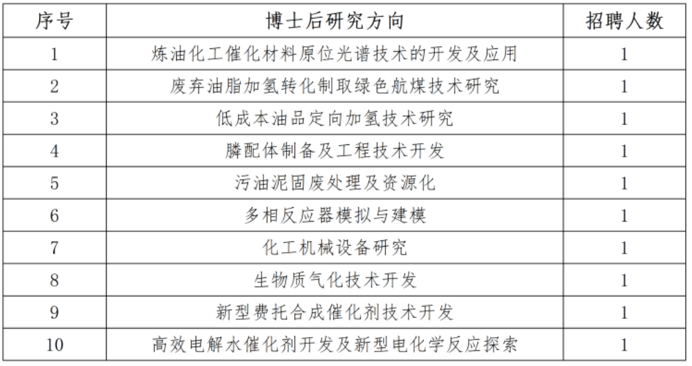 中国石化重点实验室等技术平台建设,博士后招聘研究方向及领域如下: