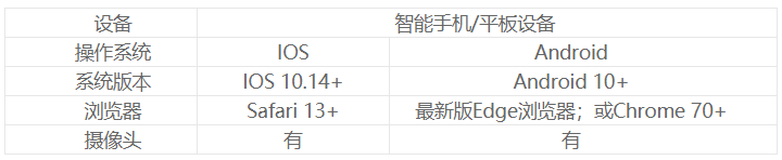 1)考生自行准备带正常上网功能的智能手机或平板设备,必须带有可正常工作的摄像头;