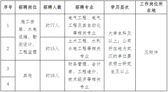 第一类招聘主体:湖北正源电力集团有限公司所属企业;