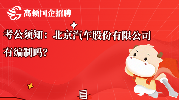 北京汽车股份有限公司是中国的一家大型汽车制造企业,总部位于北京市。作为中国汽车行业的龙头企业之一,北京汽车股份有限公司一直以来都备受关注。如果你有意向加入北京汽车股份有限公司,以下是关于其编制情况的一些介绍:...