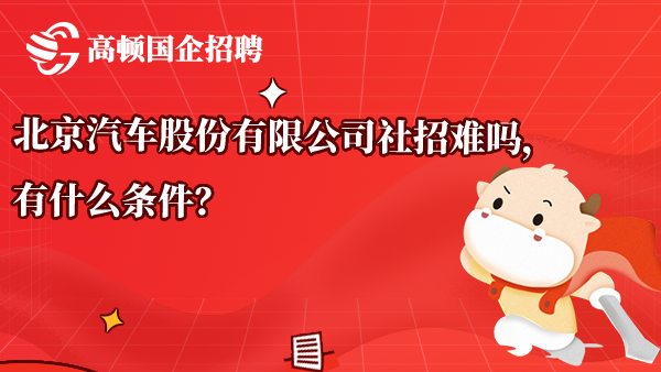 北京汽车股份有限公司是中国的一家大型汽车制造企业,总部位于北京市。作为中国汽车行业的龙头企业之一,北京汽车股份有限公司一直以来都备受关注。如果你有意向加入北京汽车股份有限公司,以下是关于其社招难易程度和条件的一些介绍:...