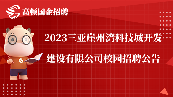 2023三亚崖州湾科技城开发建设有限公司校园招聘公告已经发布!2023三亚崖州湾科技城开发建设有限公司校园招聘岗位:群团专员、宣传专员、文秘专员等。本文提供了2023三亚崖州湾科技城开发建设有限公司校园招聘岗位、投递方式等信息。...