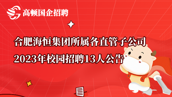 合肥海恒集团所属各直管子公司2023年校园招聘13人公告