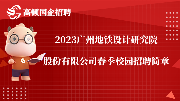 2023广州地铁设计研究院股份有限公司春季校园招聘公告已经发布!2023广州地铁设计研究院股份有限公司春季校园招聘岗位:科研岗、交通规划岗、建筑设计岗等。本文提供了2023广州地铁设计研究院股份有限公司春季校园招聘要求、招聘岗位等信息。...