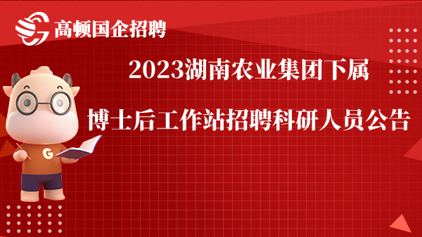2023湖南农业集团下属博士后工作站招聘科研人员公告