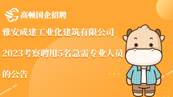 雅安成建工业化建筑有限公司2023考察聘用5名急需专业人员的公告