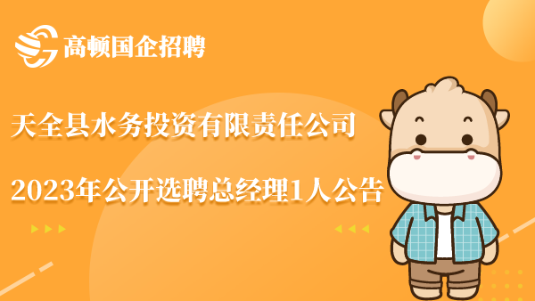 天全县水务投资有限责任公司2023年公开选聘总经理1人公告