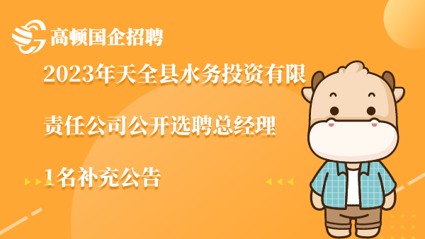 2023年天全县水务投资有限责任公司公开选聘总经理1名补充公告
