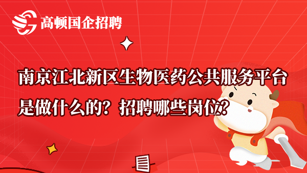 南京江北新区生物医药公共服务平台是做什么的?招聘哪些岗位?