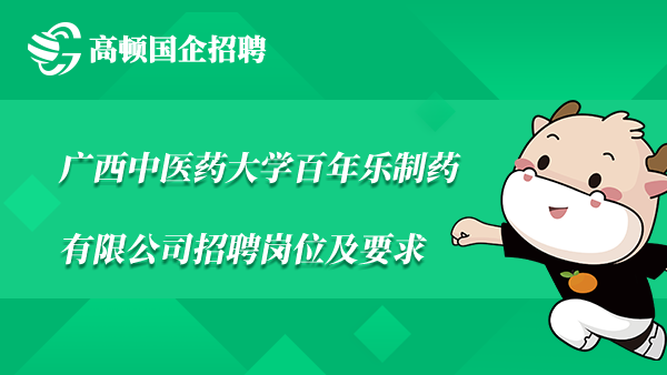 广西中医药大学百年乐制药有限公司招聘岗位及要求