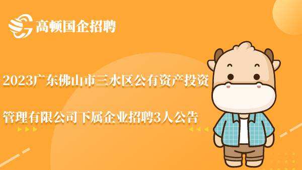 2023广东佛山市三水区公有资产投资管理有限公司下属企业招聘3人公告