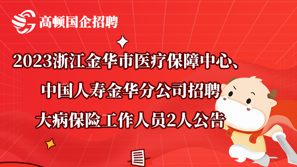 2023浙江金华市医疗保障中心、中国人寿金华分公司招聘大病保险工作人员2人公告