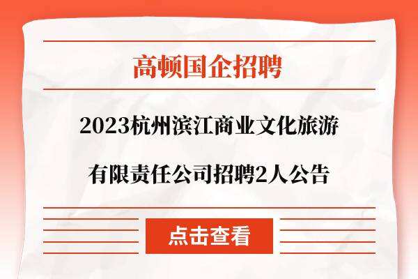 2023杭州滨江商业文化旅游有限责任公司招聘2人公告