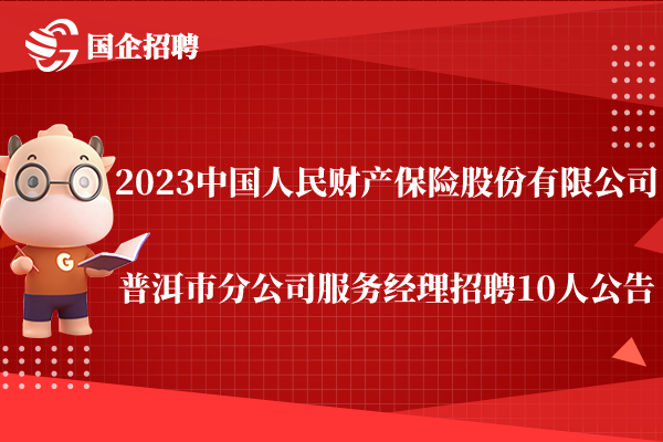 2023中国人民财产保险股份有限公司普洱市分公司服务经理招聘公告已经发布!2023中国人民财产保险股份有限公司普洱市分公司服务经理招聘报名时间:2023年2月17日开始。本文提供了2023中国人民财产保险股份有限公司普洱市分公司服务经理招聘...