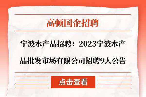 宁波水产品招聘:2023宁波水产品批发市场有限公司招聘9人公告