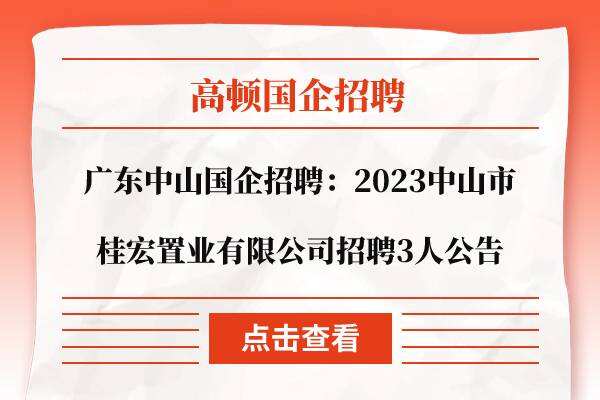 广东中山国企招聘:2023中山市桂宏置业有限公司招聘3人公告