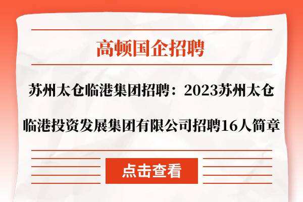 苏州太仓临港集团招聘:2023苏州太仓临港投资发展集团有限公司招聘16人简章