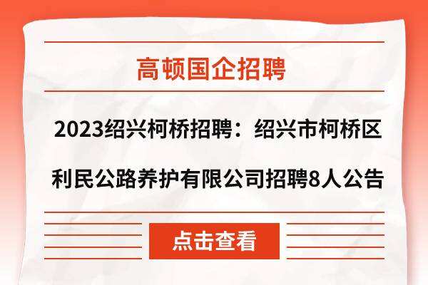 2023绍兴柯桥招聘:绍兴市柯桥区利民公路养护有限公司招聘8人公告