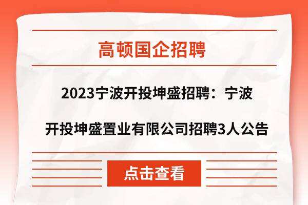 2023宁波开投坤盛招聘:宁波开投坤盛置业有限公司招聘3人公告