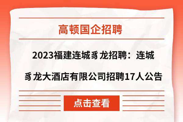 2023福建连城豸龙招聘:连城豸龙大酒店有限公司招聘17人公告