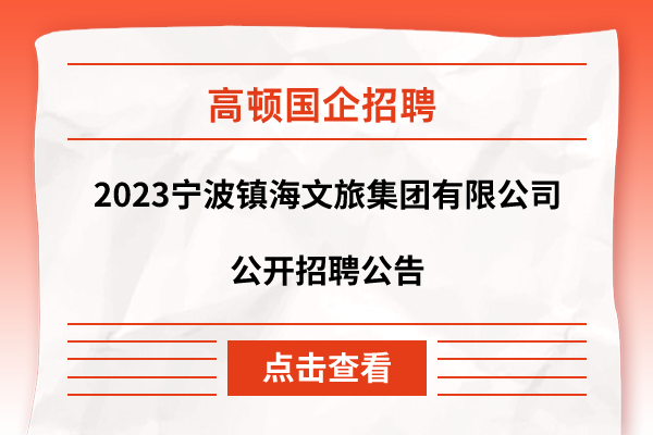 宁波市镇海文旅集团招聘:2023宁波镇海文旅集团有限公司公开招聘公告