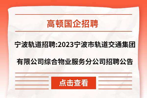 宁波轨道招聘:2023宁波市轨道交通集团有限公司综合物业服务分公司招聘公告