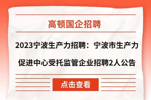 2023宁波生产力招聘:宁波市生产力促进中心受托监管企业招聘2人公告