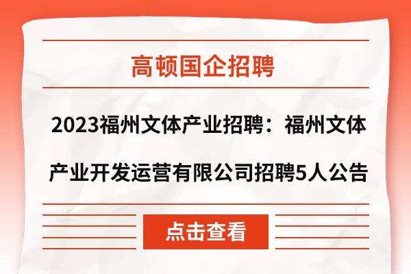 2023福州文体产业招聘:福州文体产业开发运营有限公司招聘5人公告