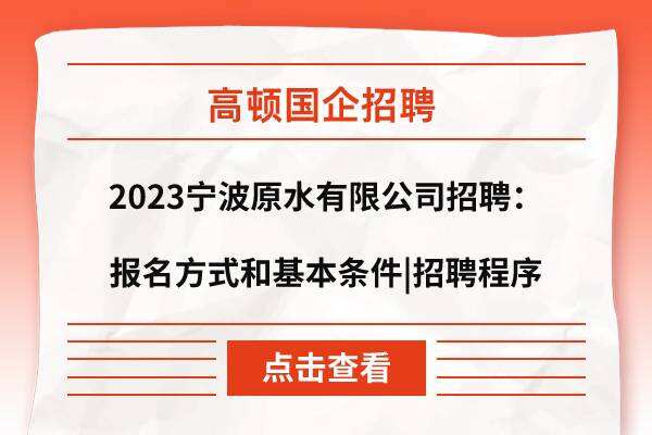 2023宁波原水有限公司招聘:报名方式和基本条件|招聘程序