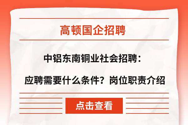 中铝东南铜业社会招聘:应聘需要什么条件?岗位职责介绍