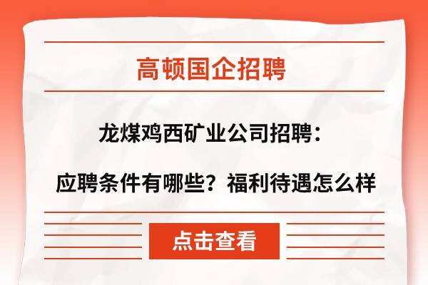 龙煤鸡西矿业公司应聘条件主要有这些:1.男性,年龄18-55周岁,初中及以上文化程度,身心健康,符合井下招工体检标准;2.甘于奉献,热爱矿山事业;品行端正,遵纪守法,诚实守信,无违纪违法等不良记录。...