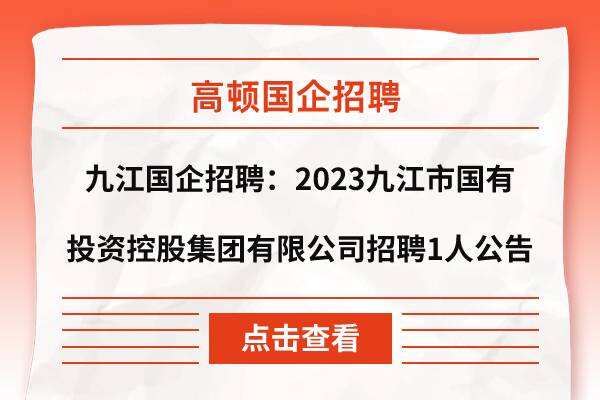 九江国企招聘:2023九江市国有投资控股集团有限公司招聘1人公告