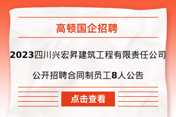 四川兴宏升建筑招聘最新消息:2023四川兴宏昇建筑工程有限责任公司公开招聘合同制员工8人公告