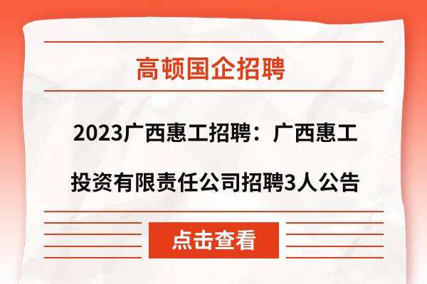 2023广西惠工招聘:广西惠工投资有限责任公司招聘3人公告