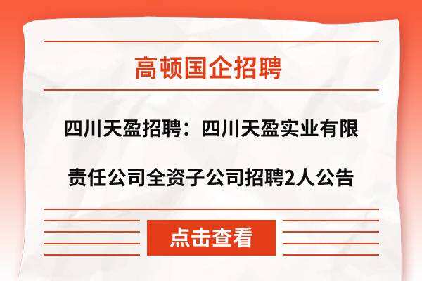 四川天盈招聘:四川天盈实业有限责任公司全资子公司招聘2人公告