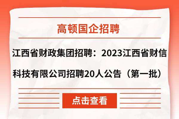 江西省财政集团招聘:2023江西省财信科技有限公司招聘20人公告(第一批)