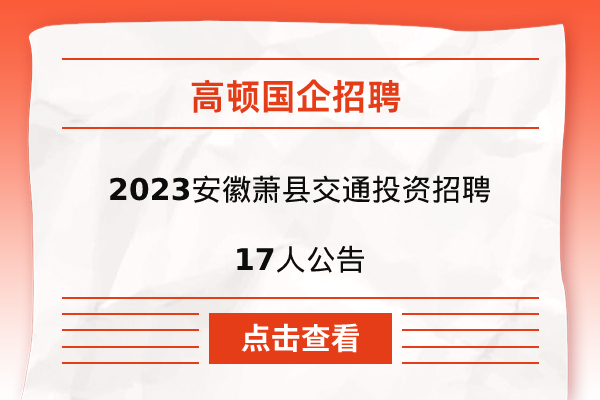 萧县交通投资集团招聘:2023安徽萧县交通投资招聘17人公告