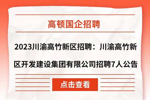 2023川渝高竹新区招聘:川渝高竹新区开发建设集团有限公司招聘7人公告
