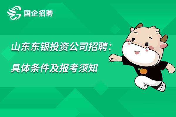 山东东银投资公司招聘条件有这些:1.遵守国家法律法规,无不良记录;2.具有较强的组织协调和综合表达能力;3.具有良好的职业操守和较强的事业心、责任感,具备团队合作精神;4.认同山东东银投资有限公司企业文化;5.身体健康。...