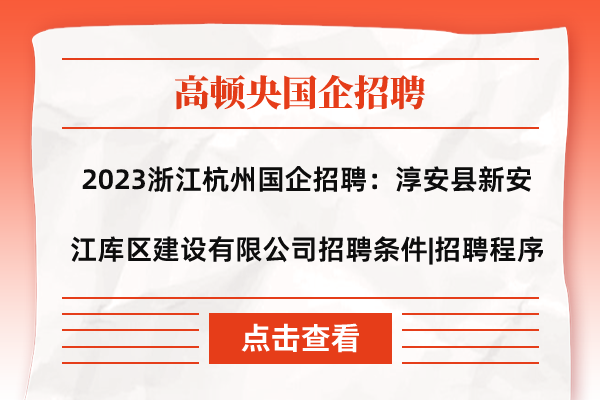 2023浙江杭州国企招聘:淳安县新安江库区建设有限公司招聘条件|招聘程序