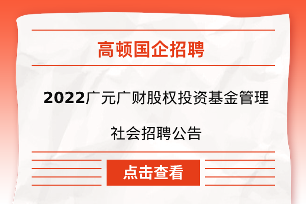 广元广财股权投资基金管理有限公司(以下简称“广财基金”)是经广元市人民政府批准,授权广元市财政局出资设立的国有独资公司,因业务发展需要,现面向社会公开招聘工作人员3名,子公司风控合规负责人岗位长期招聘至有合适人选为止,其余岗位报名时间为20...