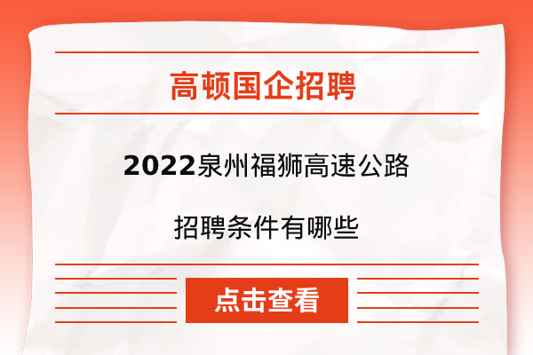 泉州高速公路招聘信息:2022泉州福狮高速公路招聘条件有哪些