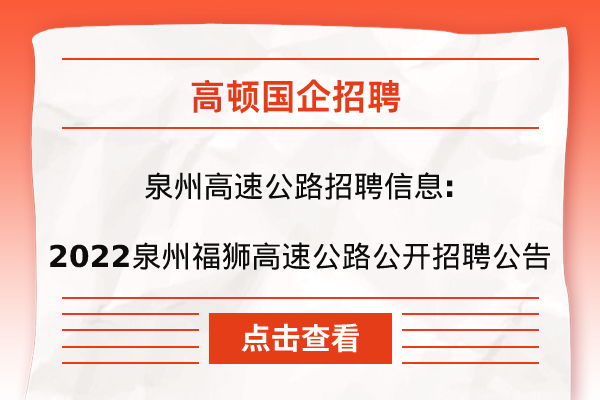 泉州高速公路招聘信息:2022泉州福狮高速公路公开招聘公告