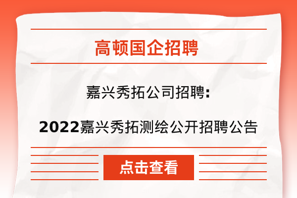嘉兴市秀拓测绘有限公司(以下简称“秀拓测绘”)是嘉兴市秀拓建设投资集团有限公司下属全资子公司,现公开招聘工作人员1名,报名时间:2022年12月27日至2023年1月10日。本文提供嘉兴市秀拓测绘有限公司招聘岗位、报名时间、报名方式、报名流...