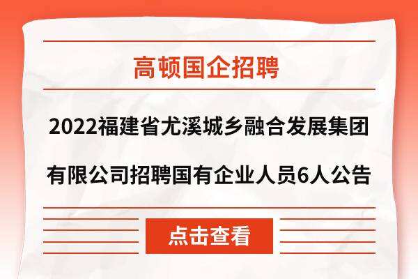 2022福建省尤溪城乡融合发展集团有限公司招聘国有企业人员6人公告