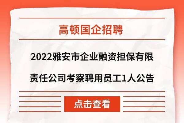 2022雅安市企业融资担保有限责任公司考察聘用员工1人公告