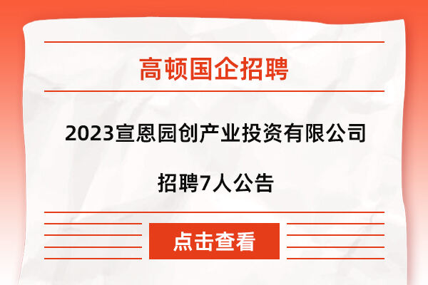 近期宣恩园创产业投资有限公司发布招聘公告,本次招聘共7人,招聘截止至2022年12月30日,笔面时间另行通知。...
